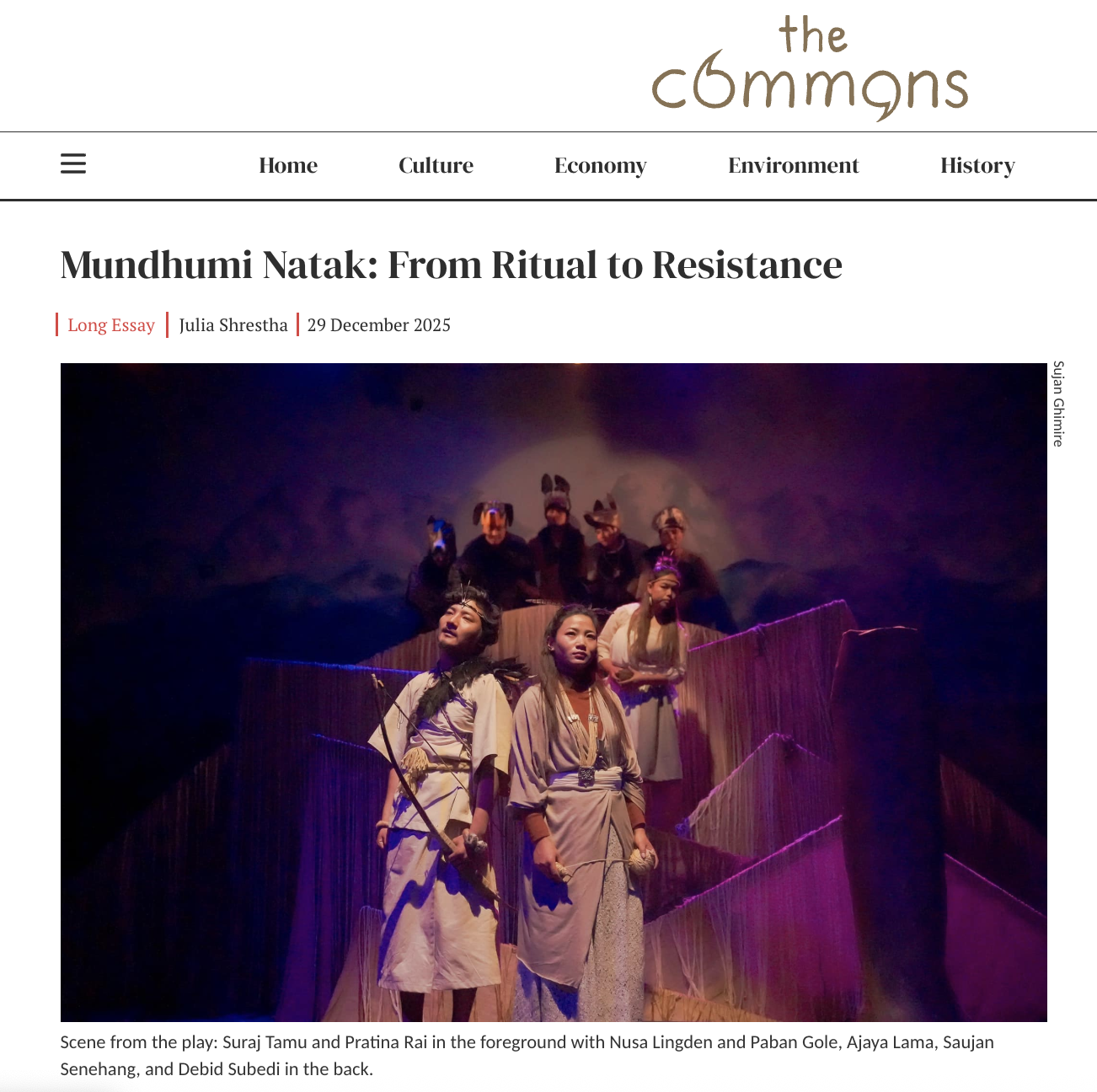 Julia Shrestha published an article in commons-nepal.com examining the emergence of what can be considered ‘Mundhum Theatre’ as a form in contemporary Nepali theatre, drawing on ethnographic observations and conversations with actors and writers of Mukkumlung: Cho:t-lung of Yakthung.